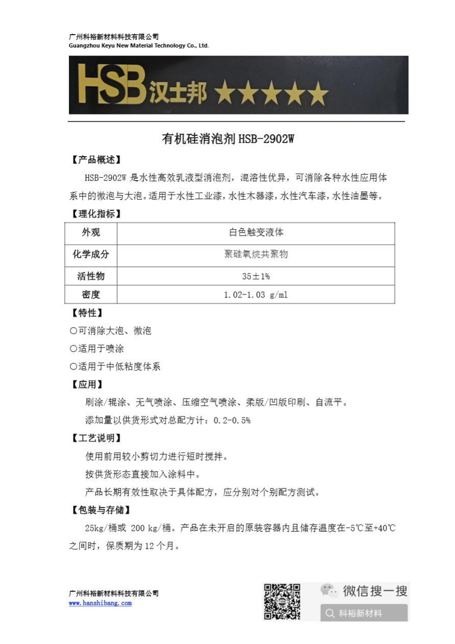 有机硅消泡剂HSB-2902w